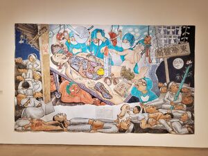 윤석열 전 대통령을 비판한 작품들이 결국 대구 봉산문화회관 전시실에서 모두 철거됐다. "정치적"이라며 대구 중구청이 전시실을 폐쇄한지 닷새만이다. 논란의 그림들이 모조리 내려가고서야 겨우 닫혔던 전시실 문이 열렸다. 일부 예술가들은 "정치에 훼손된 예술"이라며 보이콧, 관람거부 등 반발하고 있다. 대구 중구청과 대경미술연구원에 29일 확인한 결과, '내일을 여는 미술, 대구 미술, 시대정신에 대답하라'를 주제로 대구 중구 봉산문화회관에서 지난 24일부터 열린 특별기획전시에 걸렸던 민중화가 홍성담(69) 작가의 '동학의국'과 '똥광'
