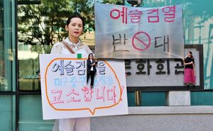 예술 검열은 범죄다, 검열 중단, 검열 반대, 예술 검열을, 대구 중구청장을 고소합니다대구 중구 봉산문화회관 앞에 1일 분노한 예술가들이 몰렸다. 서울, 대구, 부산, 광주 등 전국에서 온 예술가들이다. 이들은 직접 만든 피켓을 들고 회관 앞에서 1인 시위를 벌였다. 사회관계망(SNS)에서도 비슷한 피켓을 든 예술가들의 온라인 릴레이 1인 시위가 이어졌다. 예술단체들도 비판 성명을 내고, 정부와 지자체에 "예술의 자율 보장"을 촉구하는 목소리를 냈다. 홍성담(69) 작가의 '윤석열 비판 작품' 철거 사태 후 예술계에서 "검열" 규탄