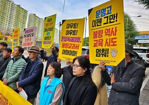 경북 경산시에 있는 사립 문명고등학교가 전국에서 유일하게 채택한 '친일·독재 미화' 논란 한국사 교과서에 대해, 교육부가 검정을 취소했다.교육부(장관 이주호)에 15일 확인한 결과, 한국학력평가원이 발행한 고등학교 한국사 1, 2 교과서에 대해 검정 합격 취소 처분을 확정했다.이유는 지난해 4월 감사원 감사에서 한국학력평가원 교과서에 대해 "검정합격 취소·발행정지 사유에 해당한다"는 감사 결과를 낸 것에 대한 후속 조치다.당시 감사원은 한국학력평가원이 표지갈이로 허위 실적을 만든 사실이 확인됐다는 내용의 감사 보고서를 냈다. '교과