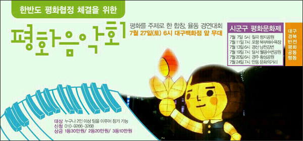대구에서는 또, 정전 60돌을 맞아 "평화협정 체결"을 바라는 평화음악회와 집회도 열린다.