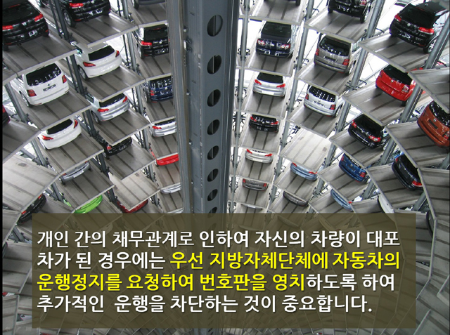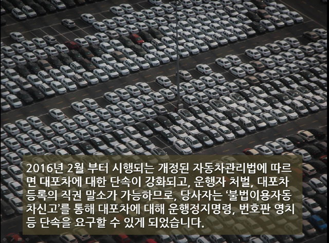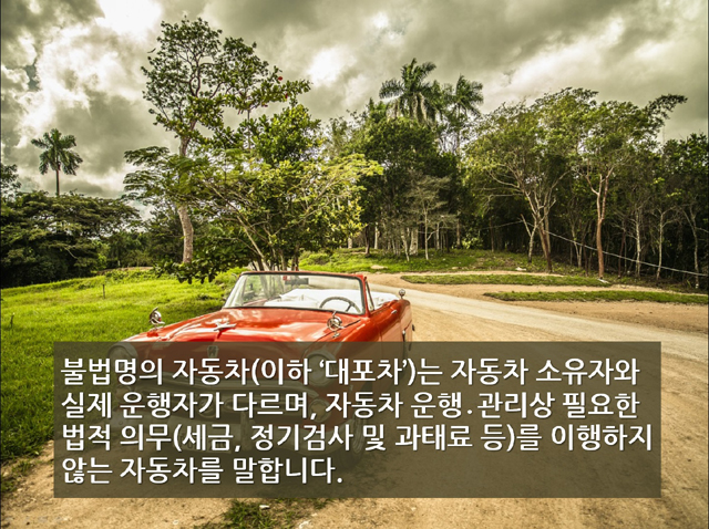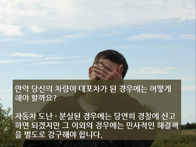 내 차가 대포차가 안 되도록 하는 것이 가장 중요하겠지만, 일단 대포차가 된 것으로 보이는 경우에는 별도의 조치를 취해야 할 것인데요. 카드뉴스를 통하여 대포차에 대한 대응방법을 정리해 보았습니다.
