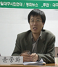 1968년 경북 영양에서 태어난 윤종화 사무처장은, 1996년 [참여민주사회 청년광장] 대표를 맡은 것을 시작으로, [대구참여연대] 정책부장과 조직국장을 거쳐 지난 2003년 5월부터 사무처장을 맡아 지역 시민운동에 힘쓰고 있습니다.
