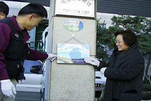 아크릴로 예쁘게 만들어진 현판을 지하철공사 정문앞에 달고 기업 관계자들과 함께 그 인근에서 캠페인도 했다.