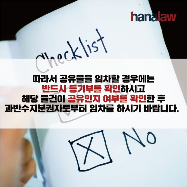주택을 임차할 때 집주인이 여러명이라면 차후에 문제가 생길 경우 법률관계가 복잡해 질 것 같아 망설여질 수 있습니다. 주택 등의 소유자가 여러명인 경우는 대부분 공유관계인데, 공유관계인 부동산을 임차할 때 실제로 곤란한 경우가 발생하곤 합니다. 공유관계에 있는 부동산을 임차할 때 임대차의 적법여부와 이에 따른 부동산의 반환문제 등이 발생할 수 있는데요. 카드뉴스를 통하여 공유관계에 있는 부동산을 임차할 경우 주의할 점을 정리해 보았습니다.