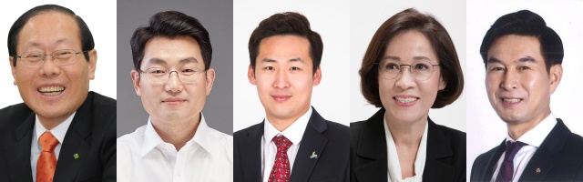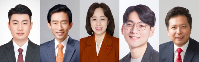 ▲ (왼쪽부터)대구 중남구 보궐선거 국민의힘 임병헌, 도태우, 손영준, 이인선, 박정조 예비후보 / 사진.선관위