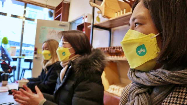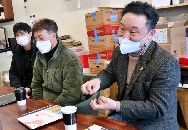 ▲ (왼쪽부터)임아현, 한민정, 백소현 위원장이 쪽방 관련 면담 중이다.(2022.2.23) / 사진.평화뉴스 김영화 기자