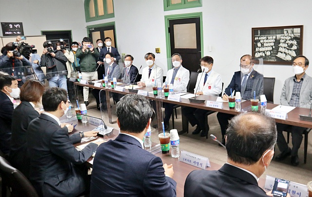 병원 관계자들과 면담에 앞서 10분 가량 기자들과 간단하게 이번 항의 방문에 대해 설명하고 곧바로 병원 본관에서 면담에 들어갔다. 면담장에는 홍원화 경북대학교 총장과 김용림 경북대 병원장 등 경북대와 경북대병원, 경북대 의과대 관계자 10여명이 참석했다. 양측은 1시간 가량 면담을 진행했다.