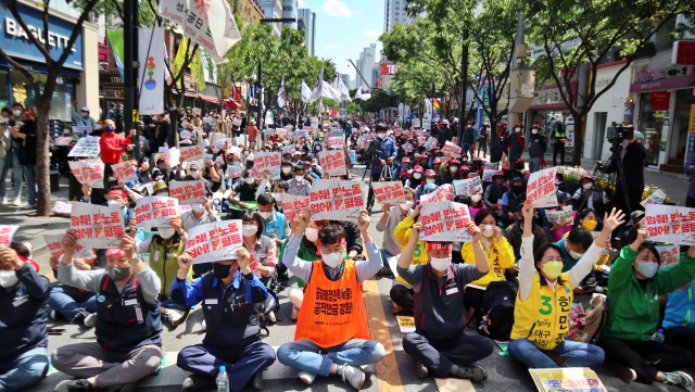 이들은 결의문에서 문재인 정부를 규탄했다. 이들 단체는 "문 대통령은 5년 전 최저임금 1만원과 노동시간 단축이라는 친노동 공약을 내세워 당선됐고, 취임과 동시에 공공부문 비정규직 제로를 선언했다"며 "하지만 5년 임기 동안 비정규직은 더욱 늘어 노동자 절반이 비정규직"이라고 비판했다.