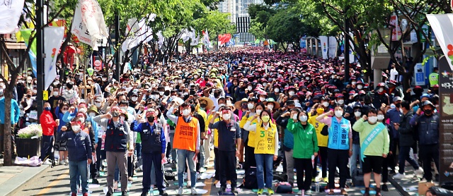 코로나19 사회적 거리두기로 인해 집회가 가로막혀 2년 만에 한 자리에 모였다. 거리로 쏟아져 나온 노동자들은 문재인 정부 5년을 '실정'을 규탄하고, 윤석열 대통령 당선인의 노동 정책 후퇴를 우려했다.