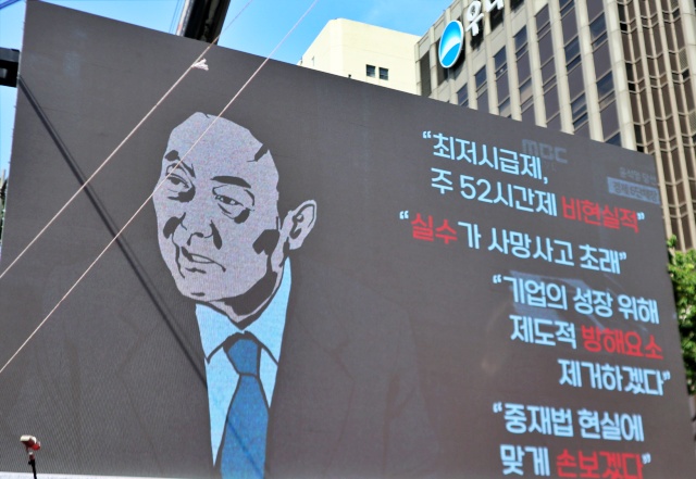 또 "최저임금 1만원은 임기 끝까지 지키지 않았으며, 코로나19 팬데믹 시대에 플랫폼 노동이라는 새로운 형태의 노동으로 인해 사회양극화는 더욱 심화됐다"고 지적했다.