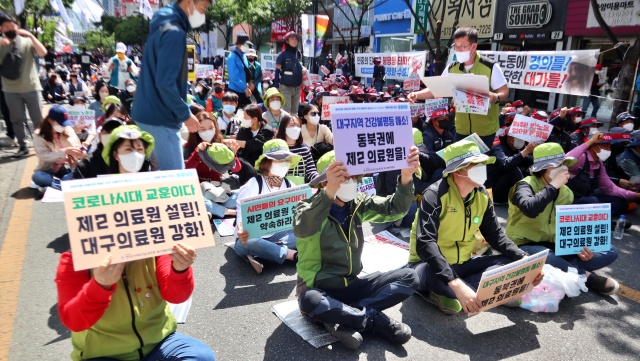 ▲ "제2 대구의료원 설립하라" 의료 노동자들 노동절 피켓팅(2022.5.1) / 사진.평화뉴스 김영화 기자