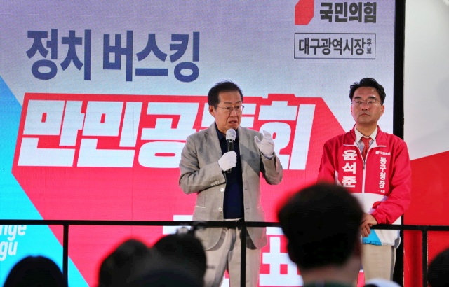 홍 후보는 지난 20일 저녁 대구 수성못 상화동산에서 선거유세 일정으로 1차 정치버스킹을 했다. 한 시민이 이 자리에서 '시장 당선 이후 대구FC 운영 방식은 어떻게 할 것이냐'고 물었다.