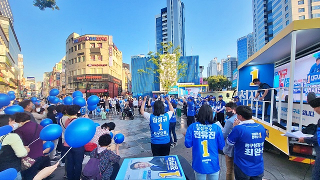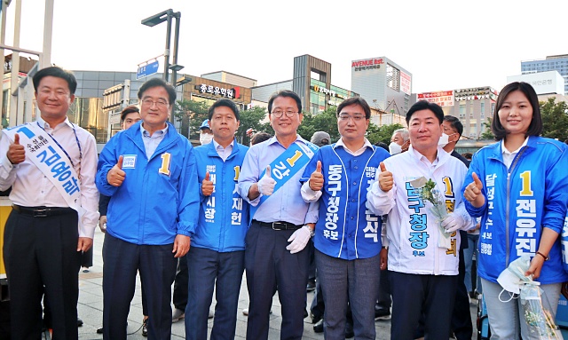 6.1 지방선거에 출마한 더불어민주당 광역·기초단체장, 국회의원 보궐선거, 기초의원 후보들이 사전투표 첫 날 대구 번화가인 동성로에 총출동해 대규모 합동 유세를 펼쳤다.