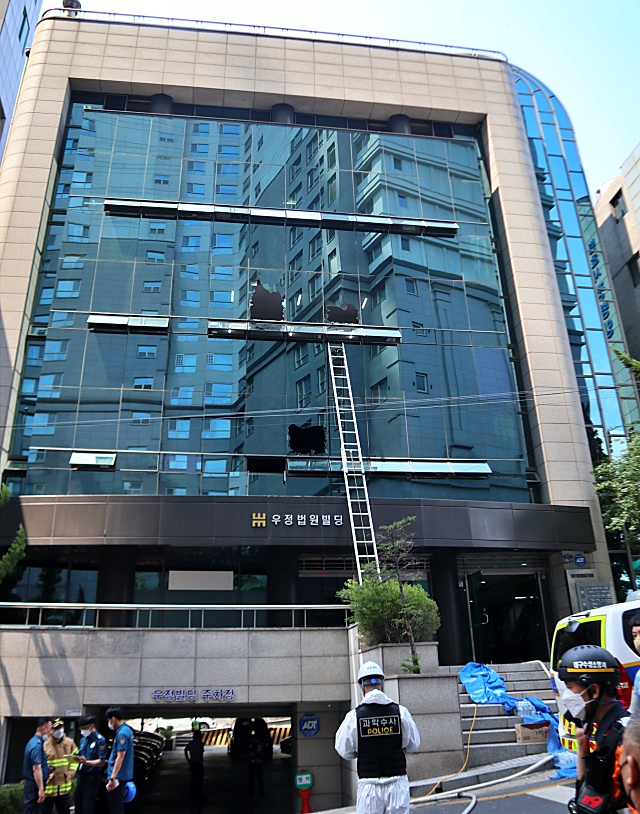 소방본부 조사에 따르면, 이날 오전 203호 A변호사 사무실에서 불이 나고 펑 소리가 난 것으로 확인됐다. A변호사는 출장을 가 현장에 없었지만, 사무실 직원 등은 현장에서 숨진 것으로 나타났다.