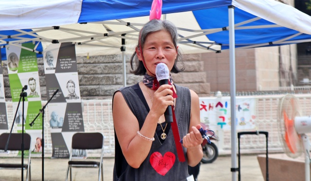 ▲ "저와 함께 닭을 기억합시다"...치맥축제 다크투어 해설가(2022.6.7) / 사진.평화뉴스 김영화 기자