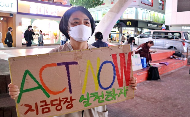 때문에 "파괴적 이윤 추구를 뒷받침하는 성장주의 체제, 견고한 정치·자본 체제 앞에 체념만 하지 말고 '이대로 살 수 없다'고 외치며 시스템을 바꿔야 한다"며 "기후·환경을 위해 노동자, 농어민, 여성, 장애인, 빈민, 종교인, 반전주의자, 성소수자, 청년, 청소년 등 모두 연대해야 한다"고 주장했다. 그러면서 "오는 24일 기후정의 실현을 위한 행진·행동을 할 것"이라며 "함께 해달라"고 촉구했다.