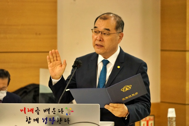 홍 총장은 "어제 오늘 문제가 아니라 10년간 반복되는 문제"라며 "학내, 교육부 해결이 어려워 경찰에 의뢰했다"고 답했다. 또 "TF팀을 만들어 해결을 위해 노력 중"이라며 "너무 죄송하다"고 사과했다.