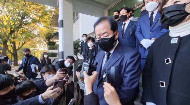 ▲ 홍준표 대구시장이 헌화 후 기자들 질문에 답변을 하고 있다.(2022.10.31) / 사진.평화뉴스 김영화 기자
