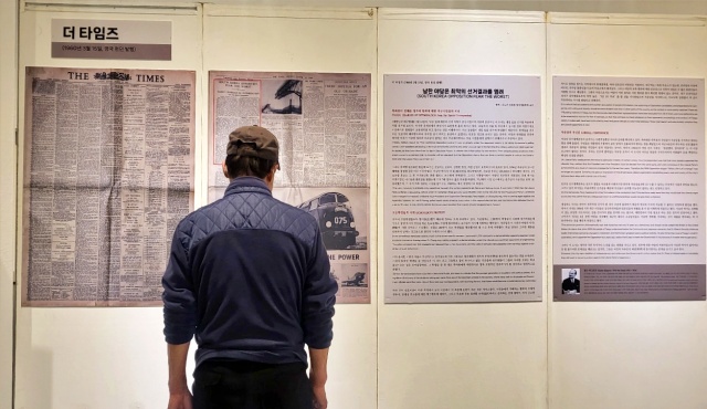 전시장을 찾은 시민들은 신기한 듯 신문 앞에 섰다. 손가락으로 신문 글자 하나 하나를 짚어가며 당시를 어떻게 적었는지 들여다봤다. 일부 시민들은 스마트폰으로 번역을 눌러 기사를 해석하기도 했다.