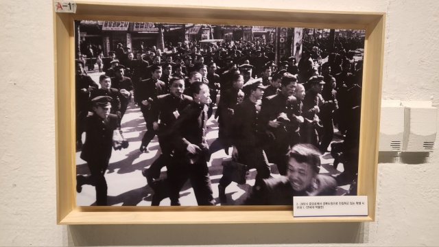 당시 사진들도 전시됐다. 1960년 2월 28일 시위 중 대구 도심에서 경찰과 대치 중인 학생들, 중앙로에서 경북도청으로 진입하는 학생 시위대, '학원의자유를 달라'는 구호를 외치는 학생들, 2.28결의문을 낭독하는 학생들, 강제 연행돼 끌려가는 학생 모습 등 당시 사진 100여장이 전시장을 가득채웠다.