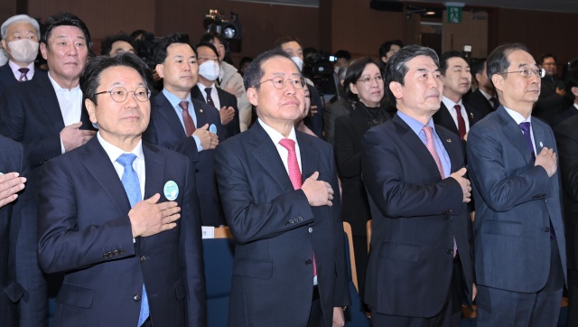 ▲ 2.28 기념식...강기정 시장, 홍준표 시장, 박영석 회장, 한덕수 총리(2023.2.28) / 사진.대구시