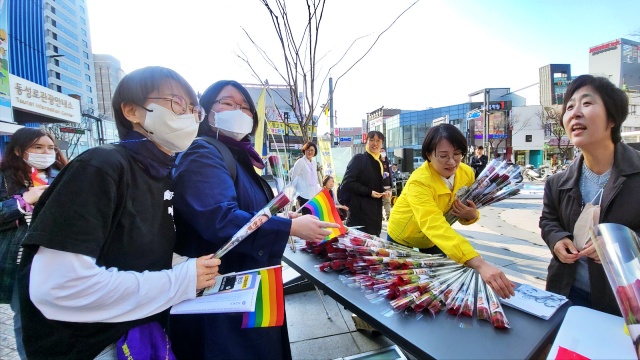▲ 세계여성의 날 '성평등 장미' 나눔(2023.3.8) / 사진.평화뉴스 김영화 기자
