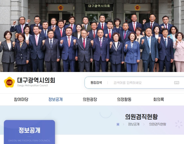 지난 5일 기준, 대구시의회와 7개 구.군의회(중구의회, 서구의회, 남구의회, 북구의회, 수성구의회, 달서구의회, 달성군의회)는 각 의회 홈페이지에 겸직 신고 내용을 공개했다. 하지만 동구의회는 유일하게 비공개했다. 대구경실련은 "지방자치법 위반"이라며 "공개"를 촉구했다.