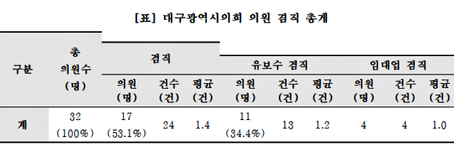 1년 유예 기간을 거쳐 올해 본격적으로 법안이 시행됐다. 하지만 강제성은 없다. 가능하면 겸직을 하지 말고, 겸직을 한다해도 보고를 하라는 게 개정안의 한계다. 그 탓에 배지를 달고도 여전히 영리 행위를 하거나 다른 직업을 가진 대구 지방의원들이 전체 2명 중 1명 꼴로 매우 많은 것으로 나타났다.