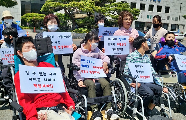 장애인 자녀를 둔 엄마들이 이날 달서구청을 항의 방문한 이유는 달서구의 장애인 지원사업 탓이다.