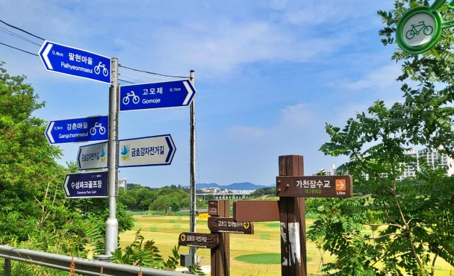 ▲ 팔현습지 인근 팔현마을, 고모제, 강촌마을, 자전거길, 수성파크골프장(2023.6.5) / 사진.평화뉴스 김영화 기자