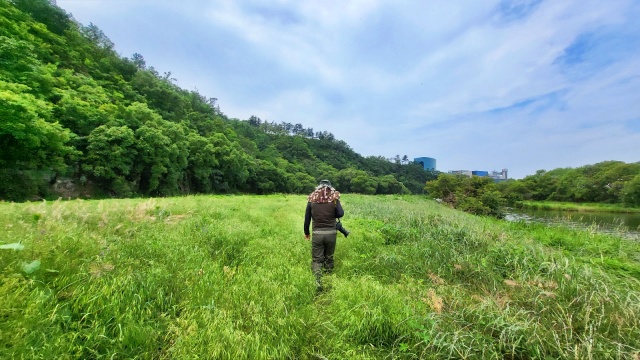 ▲ 환경부가 제방과 교각 공사를 예고한 금호강 펼현습지 숲 길(2023.6.5) / 사진.평화뉴스 김영화 기자