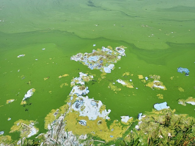 ▲ 녹조가 부패한 채 강 위를 떠다니고 있다.(2023.6.19) / 사진. 평화뉴스 정준민 수습기자