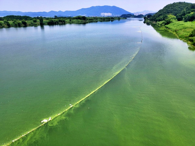 푸른빛을 띠어야 할 낙동강이 짙푸른 녹색으로 가득 찼다.