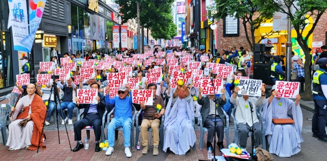 불교계와 대구시민이 함께 모여 "윤석열 대통령 퇴진"을 외쳤다.