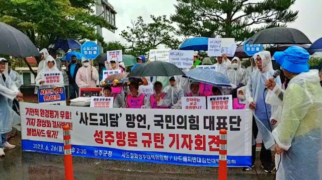 ▲ 성주대책위, 김천대책위의 '국민의힘 대표단 방문 규탄' 기자회견(2023.6.26) / 사진.소성리상황실