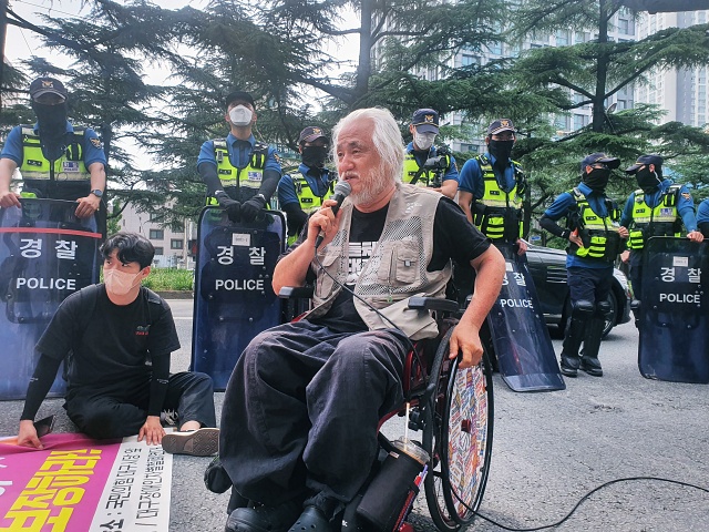 박경석 전국장차연 상임공동대표는 "대구지하철에서 장애인 이동권 보장 캠페인을 할 때 시민들이 우리 권리를 당연히 보장해야 한다고 동의했지만, 홍 시장만 동의를 하지 않는다"면서 "시설에 갇혀 살지 않았으면 좋겠다. 이동하고, 교육받고, 노동하며 지역에서 살 수 있는 환경을 만들자"고 호소했다.