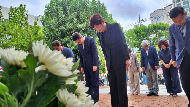 강은희 대구시교육감도 이날 대구교육청 앞 분향소를 찾아 헌화하고 묵념했다.