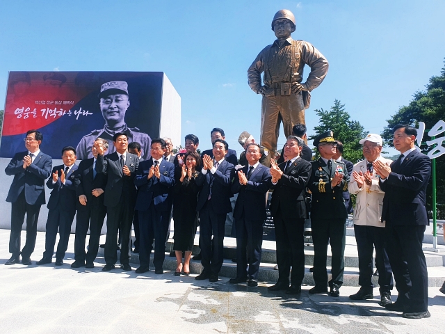 높이 4.2m의 황금빛 두 동상은 지난 5일 제막식을 가진 백선엽 장군 동상 인근에 세워졌다.
