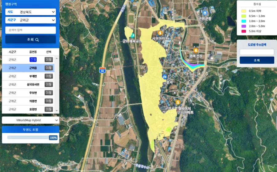 침수 위험 범위와 깊이를 구분해 대중에게 공개하고, 홍수 발생 시 대피 경로나 위험 인식을 심어주는 게 지도의 목적이다. 정보를 활용해 지자체가 재해 대책을 미리 마련한다는 취지도 담고 있다.