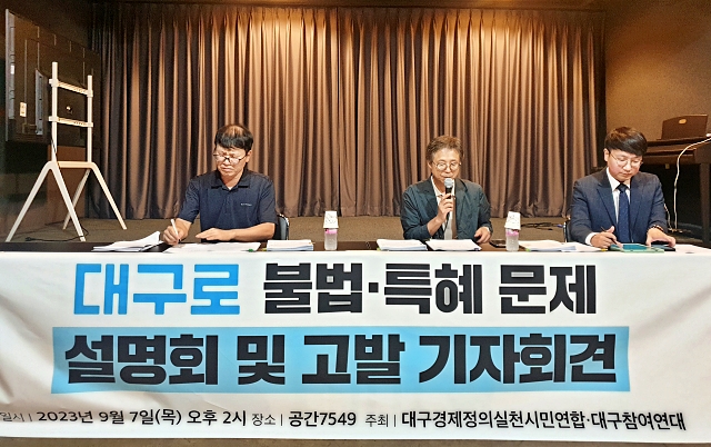 ▲ 대구로 불법과 특혜 문제 설명회 및 고발 기자회견(2023.9.7) / 사진.평화뉴스 정준민 기자