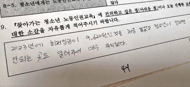 "2023년 최저임금이 9,620원인 것을 처음 알았었어요"(노동인권교육을 받은 대구 중학생들 의견)