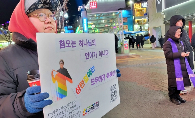 ▲ "혐오는 하나님의 언어가 아니다. 성탄절에는 모두에게 축복을" 피켓팅(2023.12.17) / 사진.평화뉴스 김영화 기자
