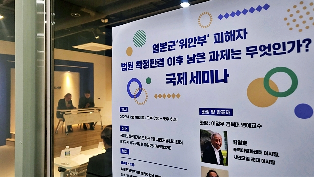 (사)정신대할머니와함께하는시민모임과 동북아평아센터(North Asia Peace Center), 대구경북전문직단체협의회, 국채보상운동기념사업회는 지난 16일 국채보상운동기념도서관에서 '일본군 '위안부' 피해자 법원 확정판결 이후 남은 과제는 무엇인가?'를 주제로 국제 세미나를 열었다.