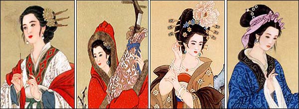 한편, 중국 고대 소설에 ‘사대미인’이 자주 나오는데, 「침어낙안(浸魚落雁)과, 폐월수화(閉月羞花)는 바로 이들을 두고 한 말이다. 용모가 뛰어난 네 명의 미인을 아름다움의 상징으로 설정하였고, 그림의 소재로도 많이 등장하며, 각각의 칭호에는 다음과 같은 재미있는 일화가 있다.