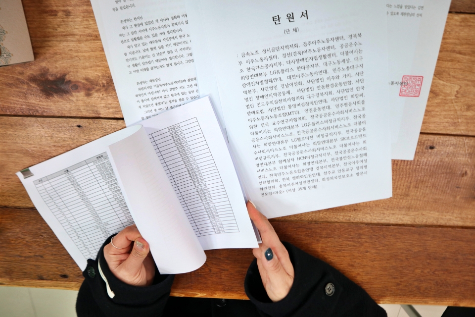 고명숙 '이주와 가치' 대표는 "일부 감형됐다고 하지만 기각이나 집행유예를 기대했는데, 받아들이기 힘든 판결"이라며 "사회적인 약자를 돕다가 벌어진 일인데 집행유예로 풀어주지 않고 실형을 유지해 너무나도 실망스럽다"고 말했다.