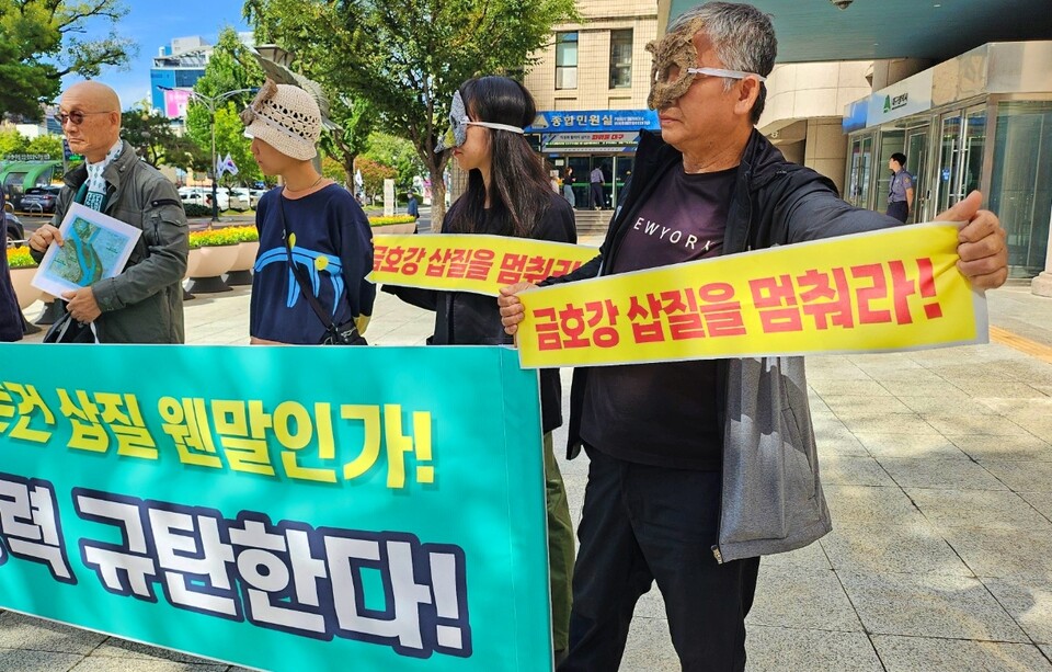 이어 "시민적 우려와 반대에도 불구하고 대구시가 사업을 강행한다면 물리적 수단까지 포함한 모든 방법을 동원해 이 사업을 막아낼 것"이라며 "대구시는 지금이라도 환경단체와 전문가의 의견을 받아 엉터리 삽질 계획을 철회하라"고 요구했다.