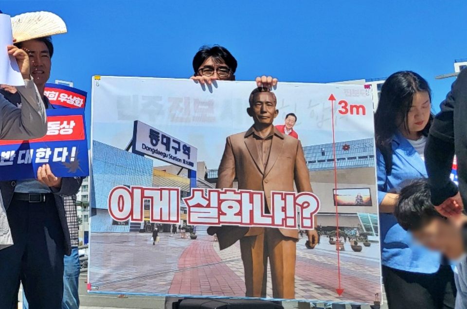 동구 동대구역 광장을 '박정희 광장'으로 명명하고, 예산 2,500만원 넘게 투입해 5m 규모의 '박정희 광장' 표지판을 세웠다. 또 예산 14억5,000만원을 들여 동대구역 광장과 옛 미군부대 자리인 남구 대명동·봉덕동 대구대표도서관(가칭) 공원에 각각 높이 3m, 6m 규모의 박정희 동상 2개를 건립한다. 동대구역 광장에 세울 동상의 작가를 선정해 현재 제작 중이다. 대구시는 올해 안으로 동상을 세울 계획이다.