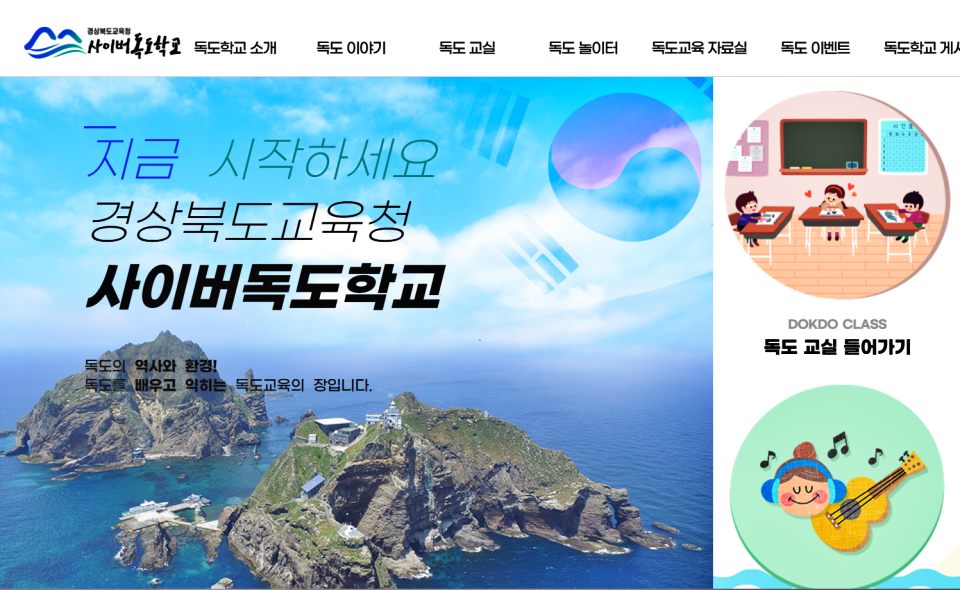 사이버독도학교(클릭) 홈페이지 문구다. 경상북도교육청이 경상북도로부터 매년 예산을 받아 운영하고 있다.