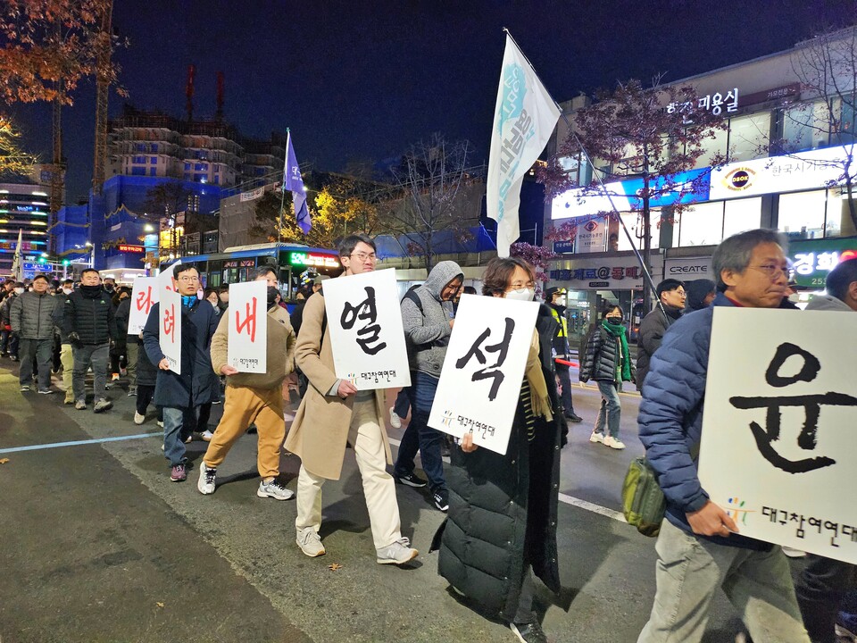 윤석열 대통령이 지난 3일 계엄을 선포한 것에 대해 대구시민 1,000여명이 "윤석열 퇴진"을 촉구했다.