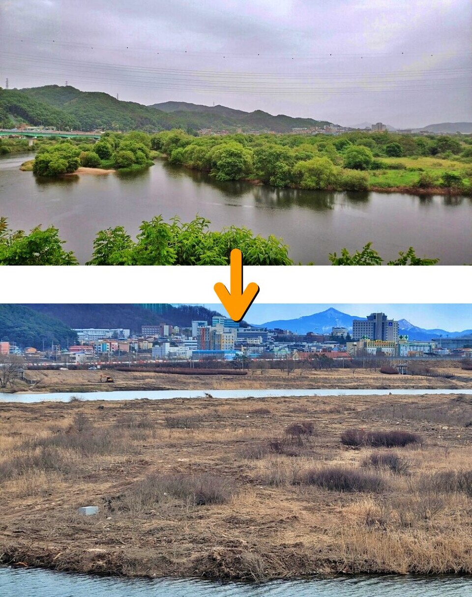 경북 안동시 왕버들 군락지. 이제는 푸른색 나무들이 모두 밀려 허허벌판이 됐다.